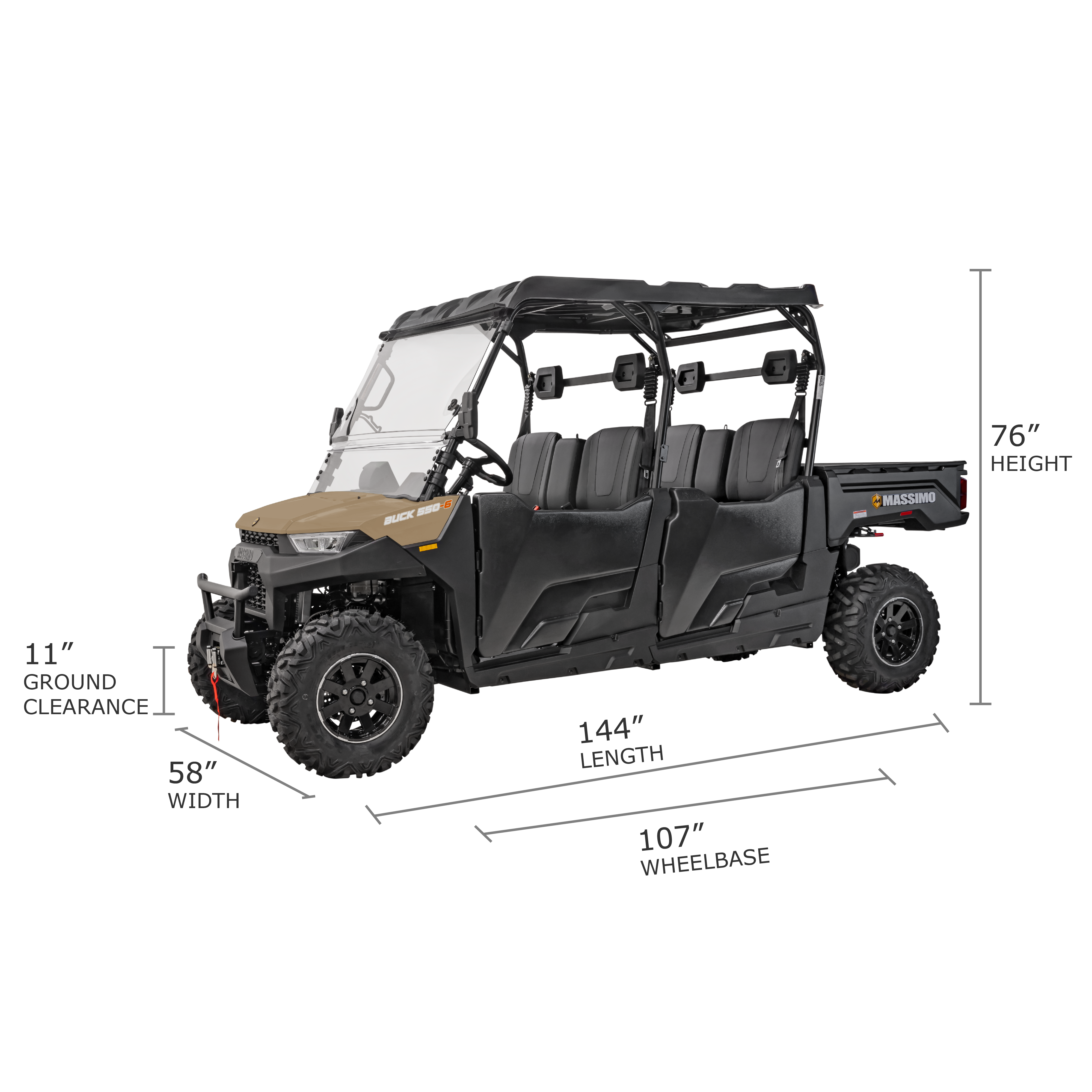- VEHICLE SIZE (L X W X H): 144 IN X 58 IN X 76 IN